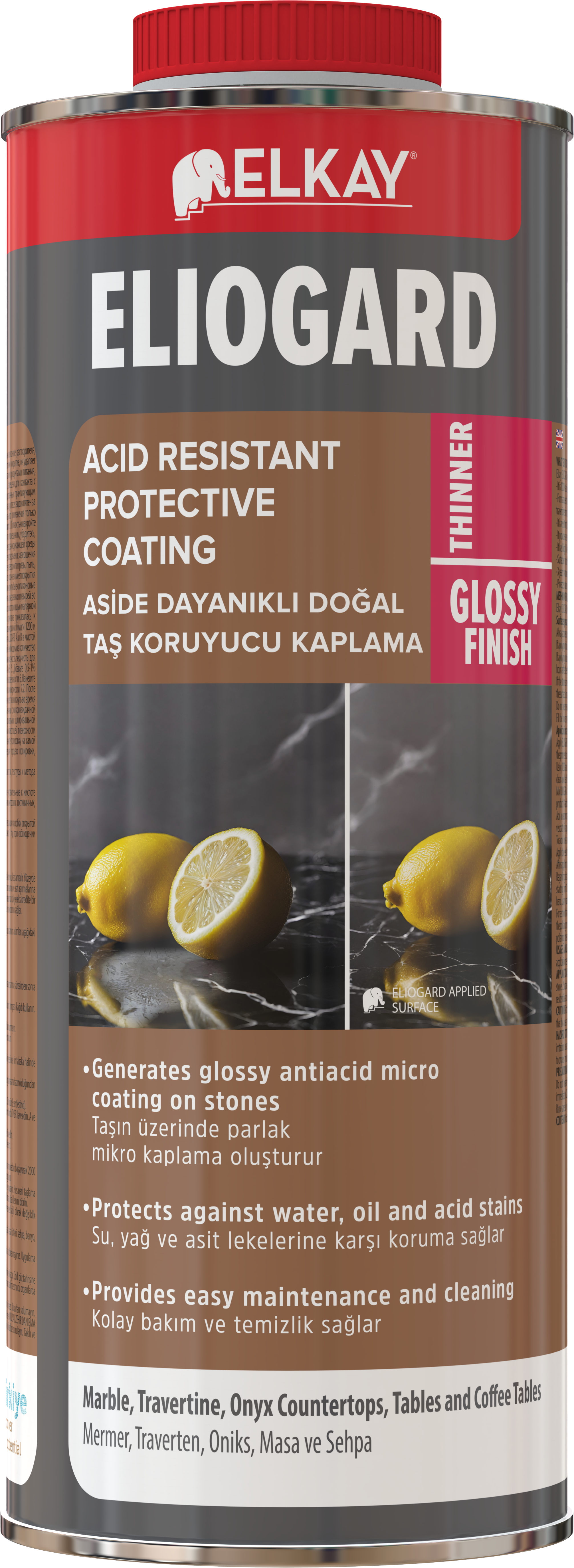 Az ELKAY ELIOGARD egy prémium minőségű, saválló védőbevonat természetes kövekhez, amely fényes mikro védőréteget képez a felületen. Kifejezetten márvány, travertin, onyx és mészkő munkalapok védelmére fejlesztve.